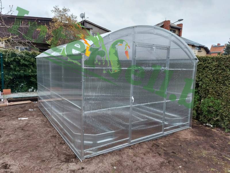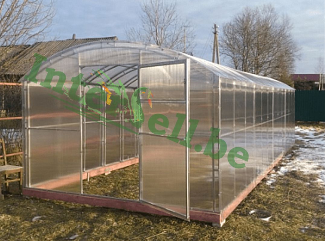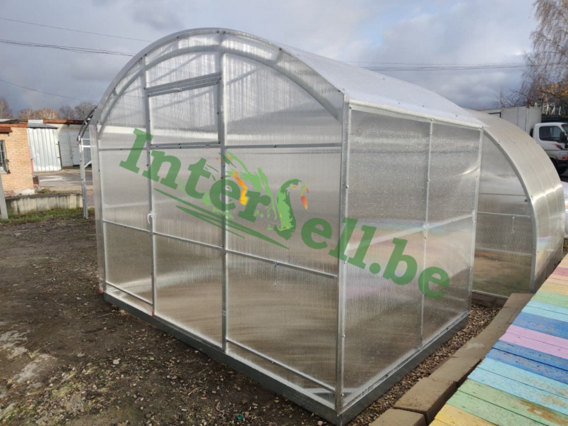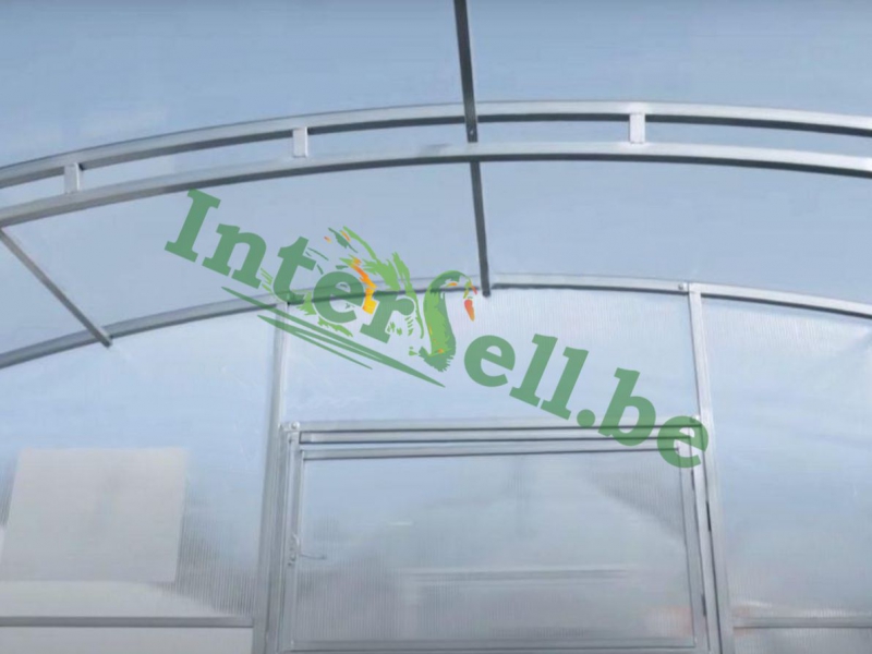 De kas met rechte wanden is speciaal ontworpen om extreme sneeuwbelastingen te weerstaan. Het dak bestaat uit dubbele bogen gemaakt van vierkante stalen buizen 20x20 mm en 40x20 mm.