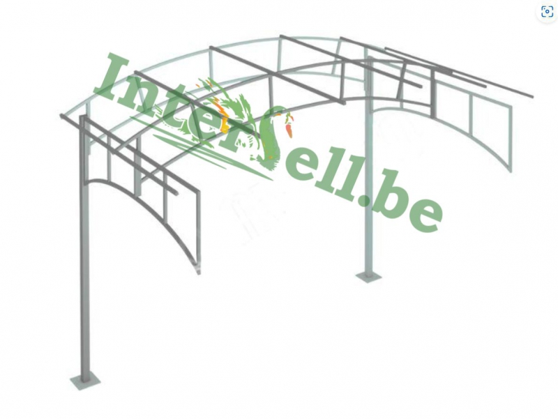 De buis van 40x20 mm is "evenwijdig" gebogen aan het dakframe, (zie afbeeldingen) wat natuurlijk extra stevigheid aan het frame geeft. De bogen zijn onderling verbonden door 5 rijen gordingen, die dankzij het gebruik van een krabsysteem in hetzelfde vlak liggen als de bogen. Dit zorgt voor een meer gelijkmatige verdeling van eventuele sneeuwbelasting op het polycarbonaat.